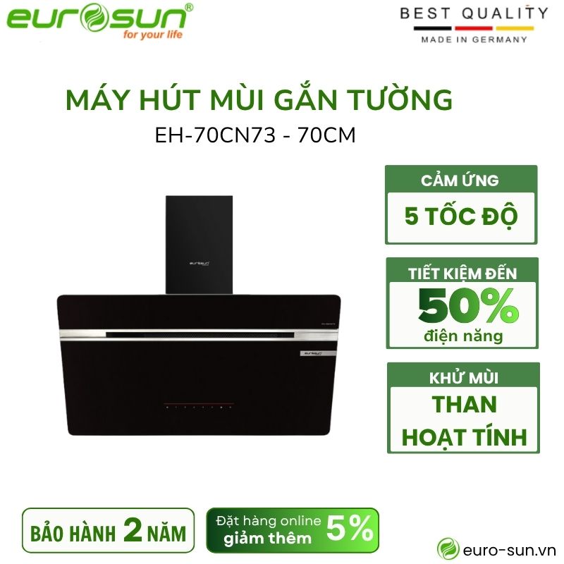 - Máy hút mùi Eurosun EH-70CN73 là dòng hút mùi gắn tường kiểu dáng T-shape Tornado sang trọng. Màu đen vừa tôn lên nét đẹp sang trọng vừa sạch sẽ, dễ dàng vệ sinh.